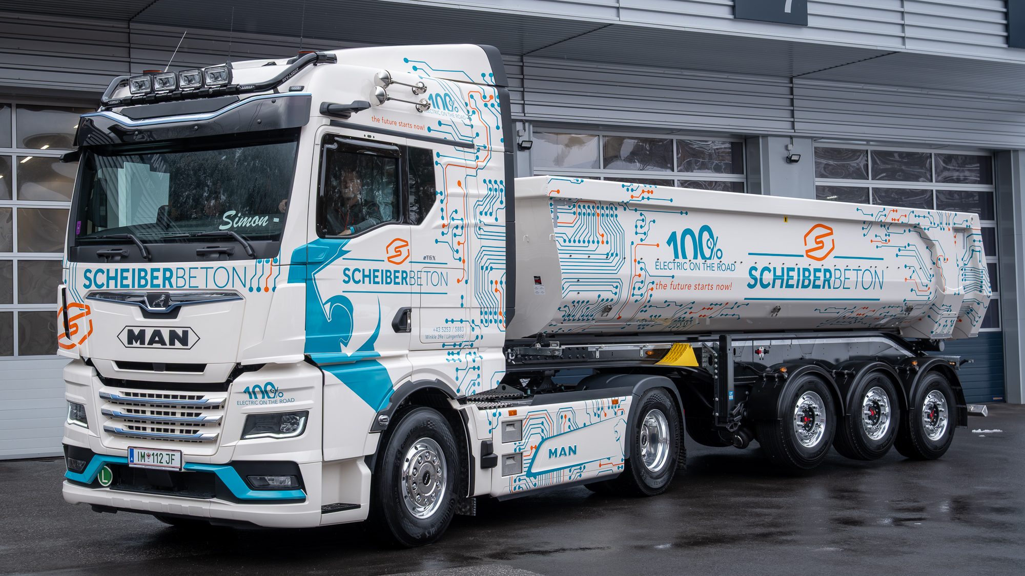 Die Gebrüder Scheiber GmbH ist seit über 40 Jahren auf die Produktion von Transportbeton, Baustoffen sowie Dienstleistungen in den Bereichen Erdbau, Transportwesen und Recycling spezialisiert. Das von Christian Scheiber geführte Unternehmen verfolgt eine klare Vision: eine umfassende E-Mobilitätswende mit dem Ziel, innerhalb der nächsten Jahre den gesamten Fuhrpark auf emissionsfreie Nutzfahrzeuge umzustellen.Derzeit werden Baumaterialien mit sechs dieselbetriebenen Sattelzugmaschinen zu Asphaltwerken im Tiroler Oberland transportiert. Um künftig einen emissionsfreien Transport innerhalb des Unternehmens zu gewährleisten, erfolgt nun die schrittweise Umstellung auf elektrische Sattelzugmaschinen. Mit der Investition in einen ersten batterieelektrischen Kipp-LKW setzt das Unternehmen ein starkes Zeichen für nachhaltige Transportlösungen im Baustoff- und Schüttgutbereich. Der E-Sattelzug kommt künftig unter anderem beim Transport von Hartspitt, Kies und Asphalt zum Einsatz und reduziert die CO₂-Emissionen im Vergleich zu einem konventionellen Diesel-Fahrzeug um rund 66 Tonnen pro Jahr.